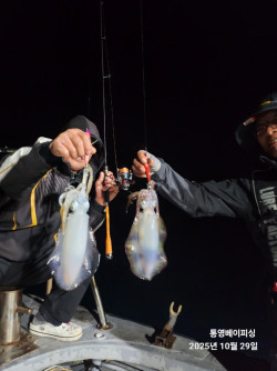 안녕하세요 통영베이피싱 입니다20251031(금) 시월의 마지막 밤을♡K 오버_즐겨 찾아주시는 좋은분들과 즐기고 왔네요.어제 그곳으로 달려 첫포인트부터 잘 나오다가 물돌이때 잠깐의 소강상태도 있었지만 이후 꾸준한 입질을 보여주었네요.토,일 기상악화로 잠깐 쉬어갑니다.월,화 예보좋네요.함께 하실분들 연락주세요.밤기온이 초겨울처럼 많이 춥습니다~~~출조하실때 따뜻한옷 챙겨오세요~~~자리는 선착순 입니다예약할때 시간 (유동적)!!!꼭 확인해주세요!!!!!✔️오후 4시 출항~ 12시 입항✔️4인 이상시 새벽출조도 가능합니다(새벽2시출조~오전10시입항)●무늬오징어 팁런●선비 ㅡ 10만●서비스제공 ㅡ 김밥 ,생수, 캔커피 등
